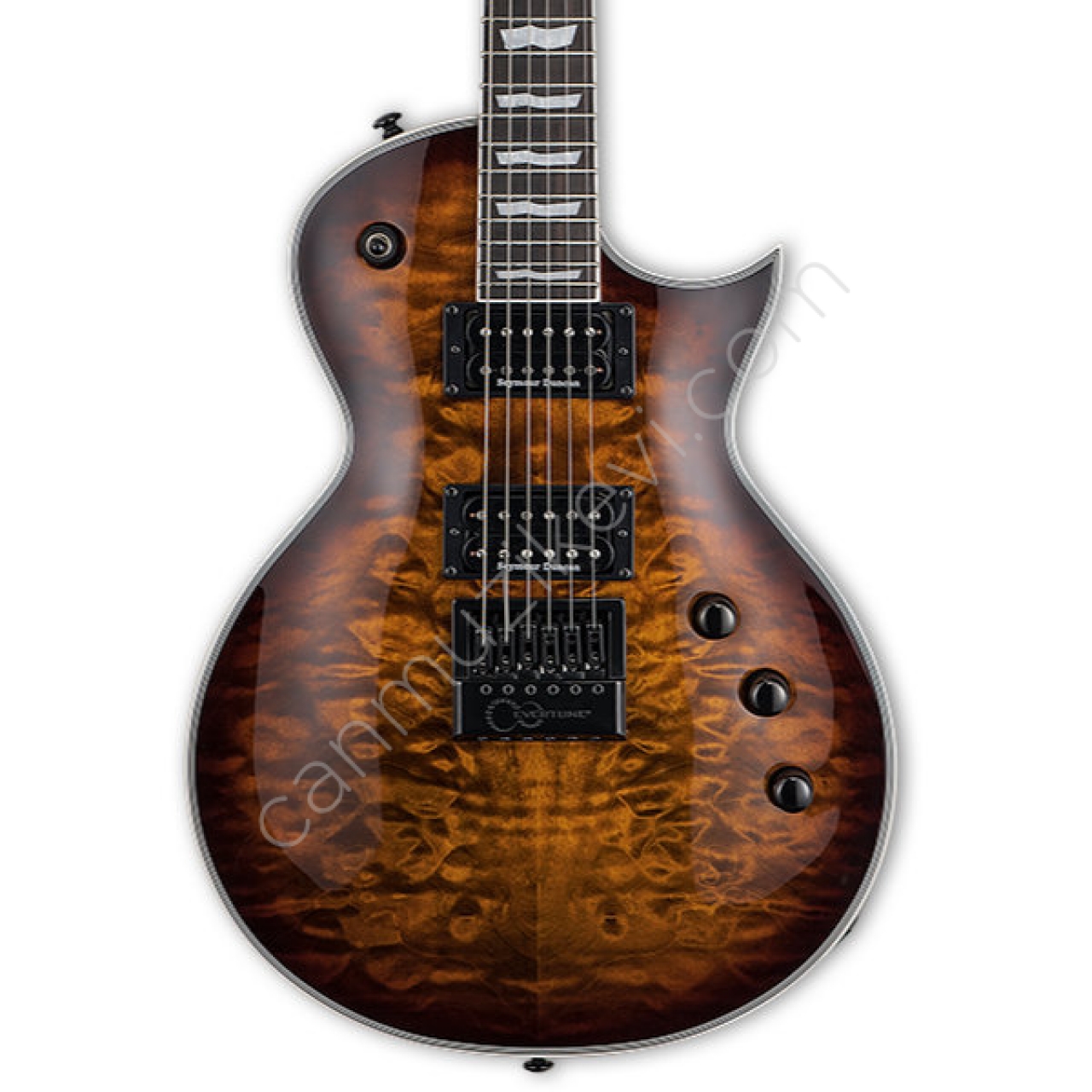 LTD EC-1000 Serisi gitarlar, müzisyenlerin bir enstrümanda ihtiyaç duyduğu tonu, hissi, görünümü ve kaliteyi sunmak için tasarlanmıştır. EC-1000 EverTune, gitarınızı akortta tutan ve neredeyse her koşulda mükemmele yakın tonlamayla sabit tel gerilimi sağlayan EverTune köprü sistemi ile dikkate değer bir teknoloji sunar. Koyu Kahverengi Sunburst kaplamalı harika görünümlü akçaağaç üst kapağa ve maun gövdeye sahiptir. Maun sap, 24 perdeli Macassar Abanoz klavye ile ve Seymour Duncan JB/Jazz pasif manyetiklerle donatılmıştır.