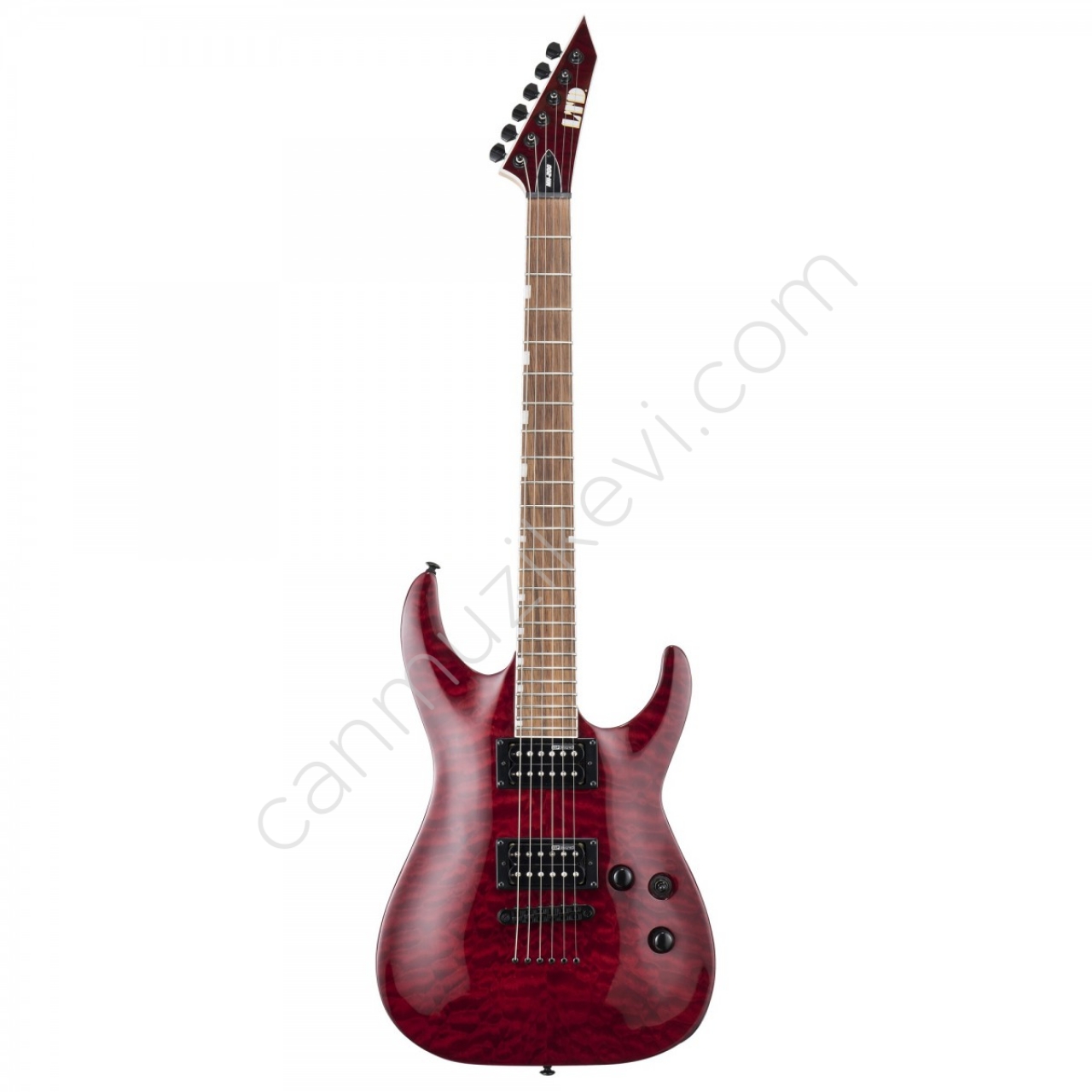 MH-200QMNT, ESP Horizon serisinin agresif elementlerini uygun fiyatlı ve kaliteli bir enstrümana aktardığı baş yapıt! See Thru Black Cherry renkli quilted maple üst kaplaması ile harika görünen bu gitar, akçaağaç sap, 24 xjumbo perdeler ve kavrulmuş jatoba klavyeye sahiptir. Sesi, güçlü ESP tasarımı manyetikler tarafından desteklenmekte ve gövde içinden geçen tel tasarımına sahip TOP köprüyle donatılmıştır.