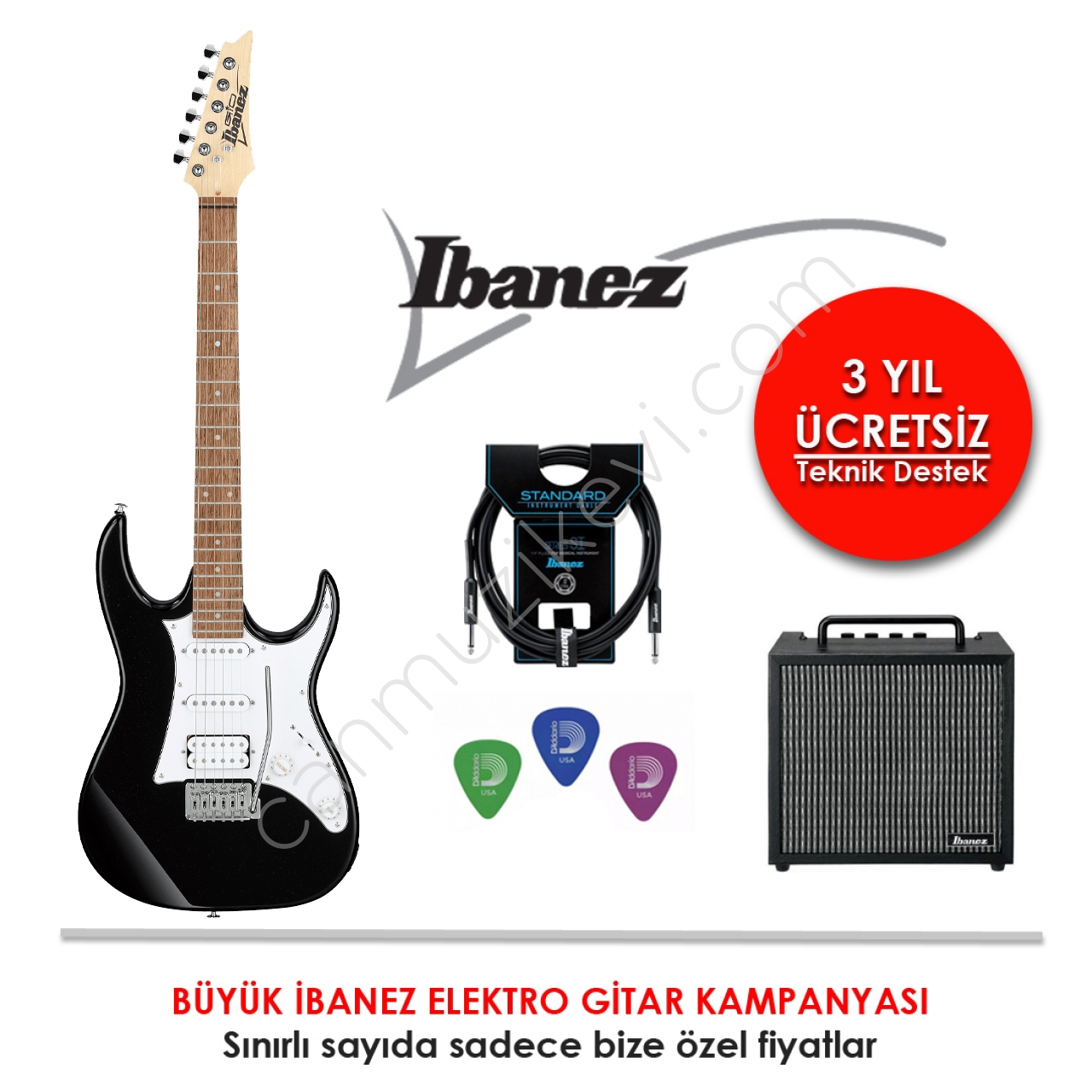 Paket İçeriği İbanez GRX40 Elektro Gitar İbanez Elektro Gitar Amfisi İbanez Kablo 3m  Gitar Çantası Gitar Askı Pena 3 adet